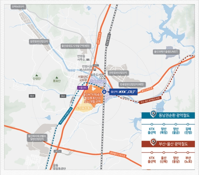 15일 울산시에 따르면 울주군 삼남읍 신화리·교동리 일원의 'KTX역세권 복합특화단지'와 동구 서부동, 북구 염포동 일원의 '자동차 일반산업단지'가 토지거래허가구역으로 재지정된다. 지정 기간은 오는 2월 1일부터 내년 1월 31일까지 1년간이다.