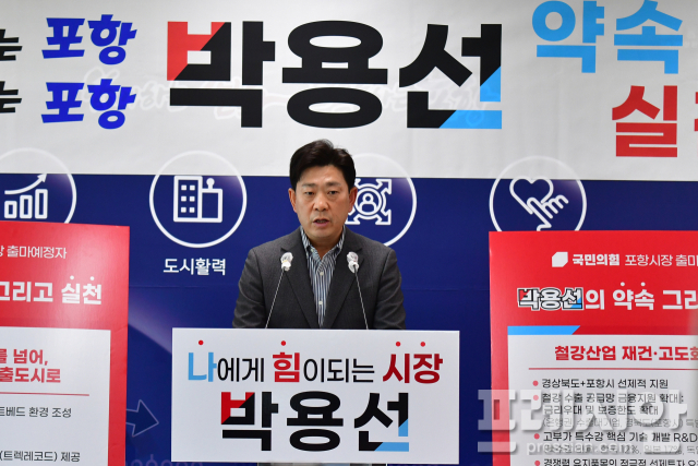 오는 6월 지방선거에서 경북 포항시장 출마를 선언한 박용선 경북도의원이 21일 포항시청 브리핑룸에서 기자회견을 열고 철강산업 재건을 핵심으로 한 공약을 발표했다.