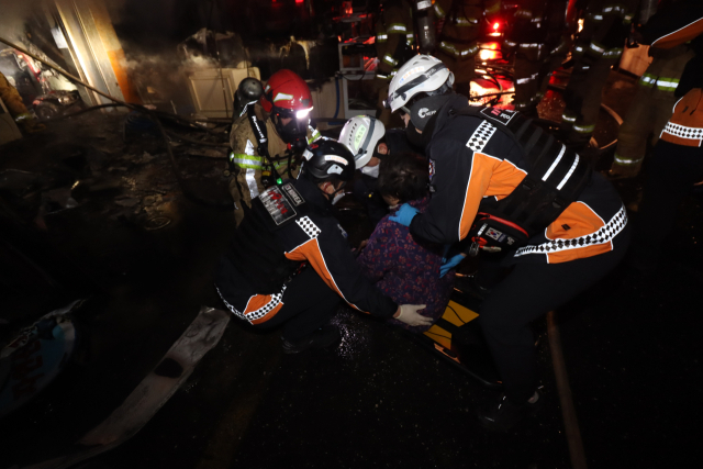 경북 포항의 한 전통시장에서 발생한 화재 현장에서 거동이 불편한 70대 여성이 소방대원들에 의해 극적으로 구조됐다.