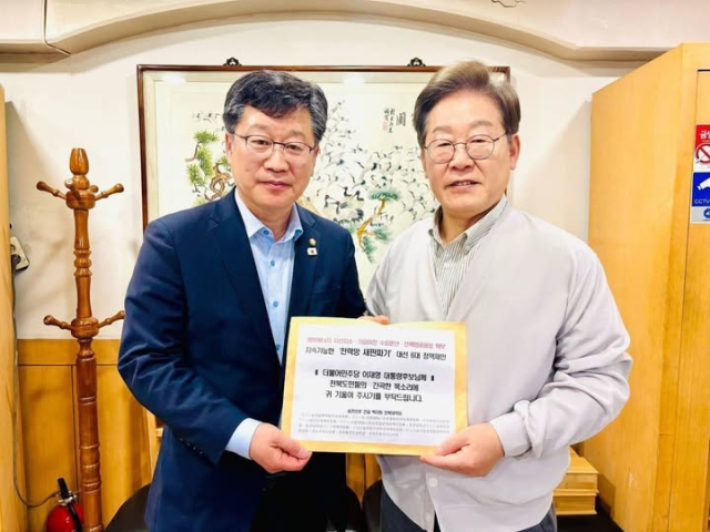'용인반도체 전북이전'을 처음 제안했던 민주당 안호영 의원은 대선 전에 이재명 당시 대통령 후보에게 전달했던 '지속가능한 전력망 새판짜기' 정책제안서가 '대통령의 말'이 돼 돌아 왔다며 당시 사진을 SNS에 올렸다.