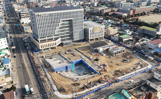 28일 오전 전북자치도 익산시 영등동의 익산시청 신청사 앞 복합문화공간 조성 현장.