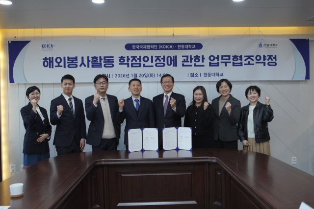 한동대는 한국국제협력단(KOICA)과 해외봉사활동 학점인정 협력에 관한 업무협약을 체결했다고 28일 밝혔다. 이번 협약을 통해 학생들의 해외 현장 봉사활동이 정규 교육과정 내에서 학점으로 인정받을 수 있는 제도적 기반이 마련됐다.