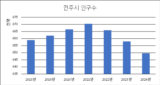 최 의원은 "전주시는 한때 인구 67만 명을 기록했지만 현재는 63만 명 수준으로 줄었고 이 감소 흐름이 멈추지 않고 있다"며 "도시 경쟁력과 지속가능성에 대해 깊은 우려를 하지 않을 수 없다"고 말했다.