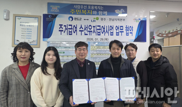 완도군은 LH(한국토지주택공사 광주전남지역본부)와 함께 주거 급여 수급자 가구의 주거비 부담을 덜어주기 위한 업무 협약을 체결했다고 3일 밝혔다.