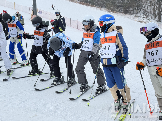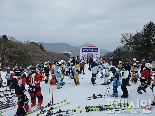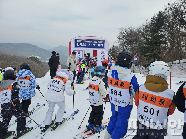 ▲4일 오전 제18회 전북특별자치도교육감배 학생 스키·스노보드대회에 참가한 학생 스키선수들이 스타팅라인에서 출발 대기 중이다. ⓒ프레시안전북본부