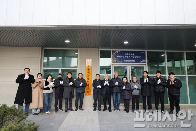 전북 무주군장애인체육회(무주국민체육센터)가 6일 사무실 현판 제막식과 함께 장애인 체육 업무를 전담할 사무국 운영을 시작했다.