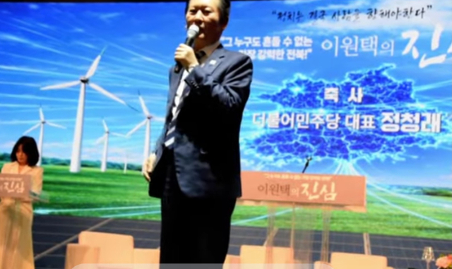 정청래 당 대표는 이날 "이원택 의원처럼 착한 사람이 없다. 원래 당 대표는 동영상 축사를 하고 웬만하면 이런 곳(출판기념회 등)에 안 간다"며 "제가 온 이유는 이 책의 내용을 읽어보면 아시겠지만 책이 진심이다"고 말했다.