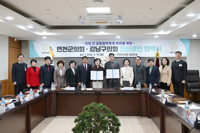 연천군의회와 서울시 강남구의회는 2월 10일 연천군의회 대회의실에서 친선결연식을 열고, 양 의회 간 우호 증진과 상호 협력을 위한 협약을 체결했다.