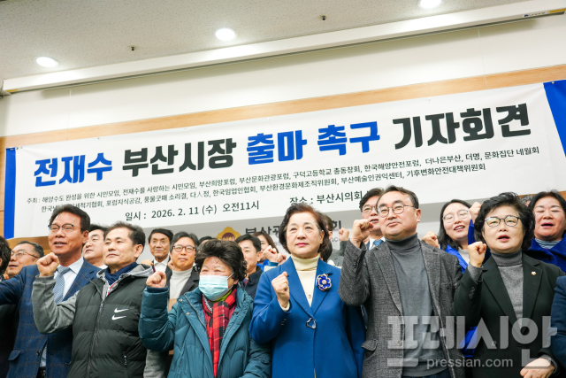류정호 부산희망포럼 공동대표도 "전 전 장관의 결단은 부산의 흐름을 바꾸는 시작이 될 것"이라며 전 의원을 향해 "부산의 내일을 위해 역사 앞에 의미 있는 선택을 해달라"고 요청했다. 이들은 "나와라 전재수"라고 구호를 외치며 전 의원의 출마 결단을 거듭 촉구했다.