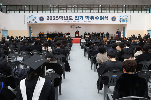 상지대(총장 성경륭)는 12일 교내 체육관에서 ‘2025학년도 전기 학위수여식’을 열고 졸업생들의 새로운 출발을 축하했다.