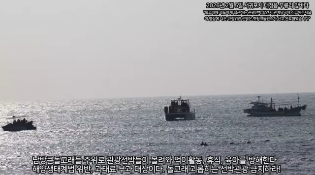 또 관광 선박들이 서로 다른 방향에서 동시에 몰려드는 상황과 관련해 "선박들이 대형을 이루고 해안가로 돌고래들을 밀어붙이며 공격적으로 관광을 하고 있다"며 "돌고래들은 피할 곳이 마땅치 않다"고 지적했다.