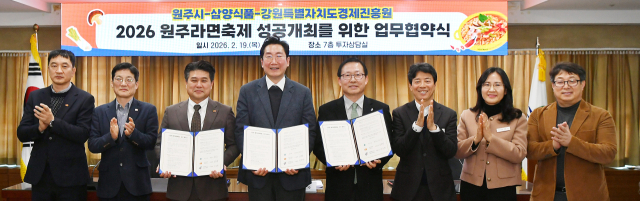원주시는 2026 원주라면축제의 성공적인 개최를 위해 19일 삼양식품, 강원특별자치도경제진흥원과 업무협약을 체결했다.