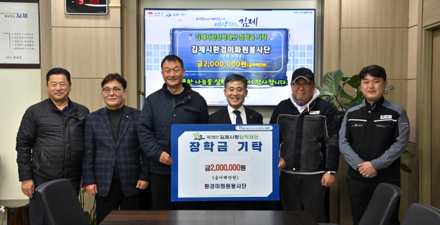 전북자치도 김제사랑장학재단에 김제시환경미화원봉사단이 200만 원의 장학금을 20일 기탁했다.