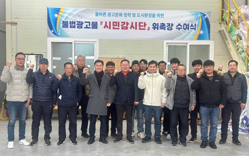 시는 위촉식을 열고 시민감시단원으로 선발된 17명에게 위촉장과 감시단증 수여했으며 ▲광고물의 적법한 표시 기준 ▲불법 광고물 정비 절차 ▲철거 과정에서 발생할 수 있는 안전사고 예방 요령 등 효율적인 활동을 위한 직무 교육이 실시됐다.