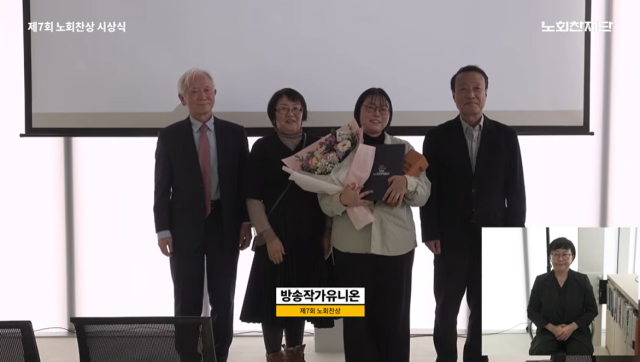 이어 "카메라와 마이크 뒤편, 화려한 영상과 다정한 음성 사이사이에 스며있는 방송작가들의 피와 땀을 대변하고, AI 도입 등 급변하는 노동 환경 속에서 비정규직 노동운동의 새로운 가능성을 제시한 점이 노회찬 정신에 깊이 부합한다"고 했다.