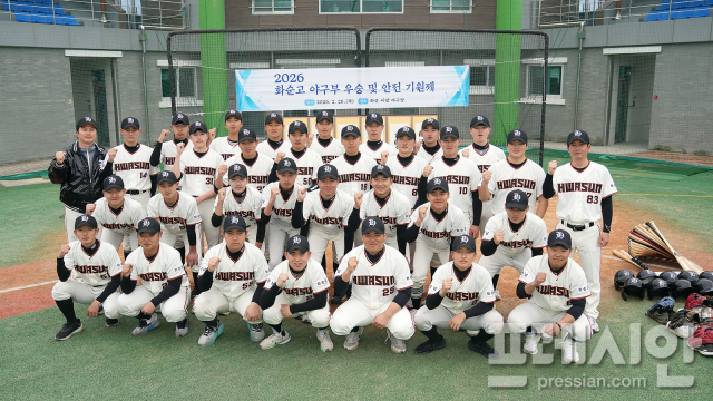 화순고등학교(교장 김주봉) 야구부가 지난 26일 화순 이양 야구장에서 '2026년 화순고 야구부 우승 및 안전 기원제'를 열고, 선수들의 안전은 물론 전국 대회 우승을 다짐했다.