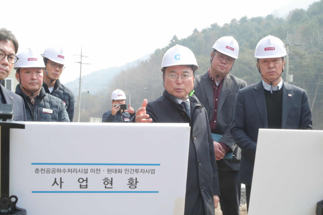 육동한 춘천시장이 10일 칠전동 일원에서 추진 중인 춘천공공하수처리시설 이전·현대화사업 현장을 방문했다.
