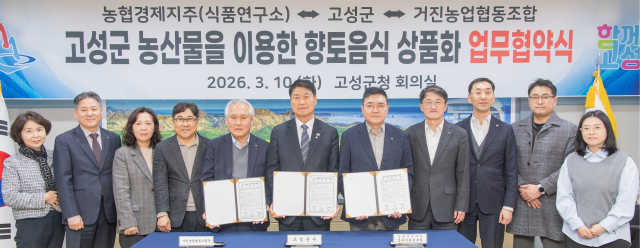 농협경제지주는 지난 10일 강원특별자치도 고성군청에서 고성군, 거진농협과 함께‘고성군 농산물을 활용한 향토음식 상품화 업무협약을 체결했다고 11일 밝혔다.