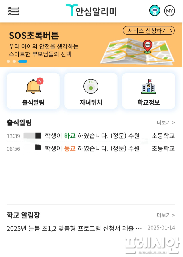 해당 서비스는 ‘등하교 SMS 알림 서비스’와 ‘학교 교육 활동 SMS 알림 서비스’ 및 ‘어린이 긴급 상황 발생 시 경고음 또는 경고 알림 서비스’로 구성돼 있으며, 학부모와 학생의 동의를 받아 서비스를 제공하고 있다.