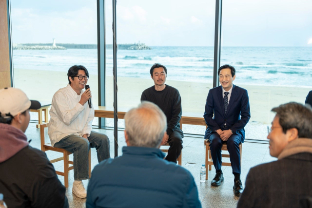 우상호 더불어민주당 강원특별자치도지사 예비후보가 영동권 정책 행보 마지막날인 13일 양양 서피비치를 방문해 지역 청년들과 간담회를 했다.