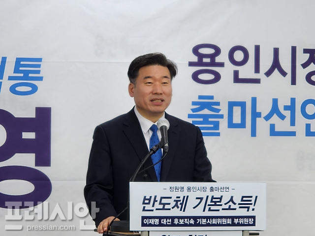 정원영(59) 용인특례시장 예비후보(전 경기 용인시정연구원장)이 16일 기자회견을 열고 오는 6월 치러지는 용인특례시장 선거를 앞두고 더불어민주당 소속 후보로 출마를 공식 선언했다.