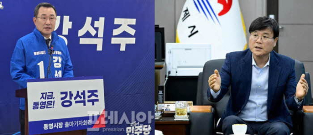 민주당 경남도당 공천관리위원회는 17일 통영시청 브리핑룸에서 기자회견을 열고 "통영시장 후보에 강석주 전 통영시장, 거제시장 후보에 변광용 현 거제시장을 단수 공천했다"고 발표했다.