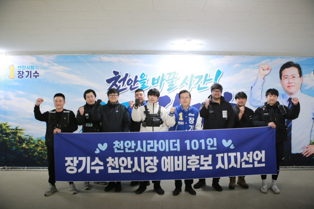 충남 천안지역 배달라이더 101명이 장기수 더불어민주당 천안시장 예비후보에 대한 지지를 공식 선언했다.