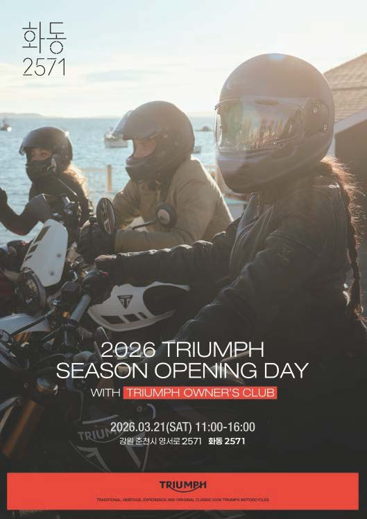 춘천 먹거리복합문화공간인 화동2571에서 오는 21일 영국 프리미엄 모터사이클 브랜드 트라이엄프의 ‘2026 트라이엄프 시즌 오프닝 데이’가 개최된다.