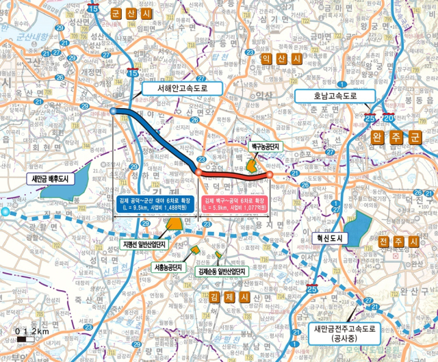 해당 사업은 백구~공덕(5.9km) 및 공덕~군산 대야(10.0km) 구간을 6차로로 확장하는 프로젝트다. 사업이 완료되면 지역 간선 도로망이 획기적으로 개선되어 물류 비용 절감과 지역 경제 활성화에 기여할 것으로 기대된다.