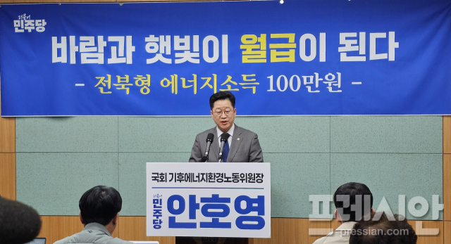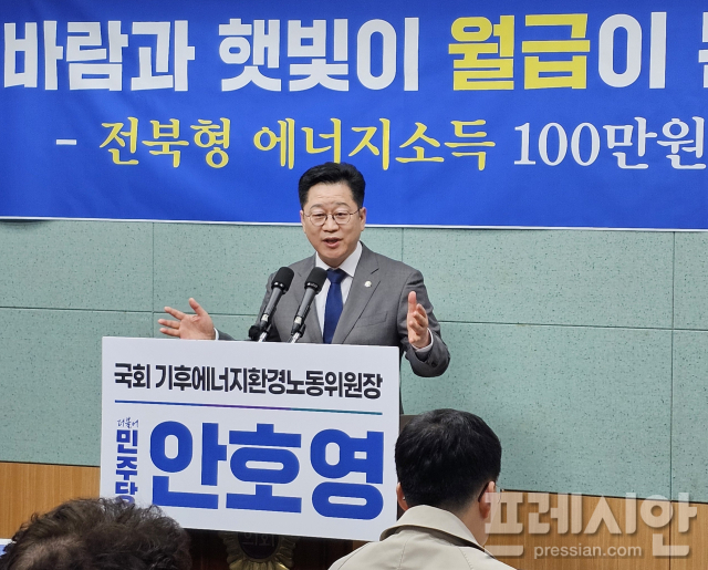 더불어민주당 전북도지사 경선에 나선 안호영 국회의원이 ‘에너지소득 100만 원’을 전면에 내걸며 정책 경쟁에 가세했다. 바람과 햇빛으로 만든 전력을 도민 소득으로 연결하겠다는 구상이다.