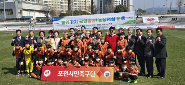 포천시민축구단이 22일 열린 2026 K3리그 홈 개막전에서 경주한수원축구단을 2대1로 꺾고 시즌 첫 승을 거뒀다.