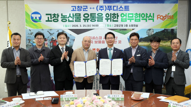 고창군은 25일 군청에서 고인돌휴게소 운영사인 (주)푸디스트와 지역 상생 발전을 위한 업무협약을 체결했다고 밝혔다. 이날 협약식에는 고창군수와 하동열 (주)푸디스트 상품BU장 등 양측 관계자들이 참석해 구체적인 협력 방안을 논의했다.
