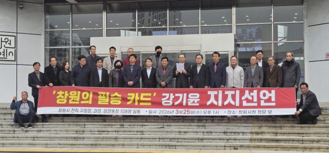 전직 창원시 구청장·과장·읍면동장 등 108명 일동이 강기윤 예비후보를 지지하고 나섰다.