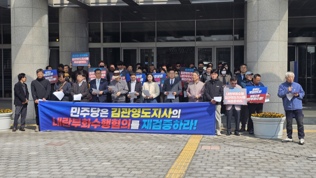 내란청산민중위는 "현재까지 제시된 영상과 문서 자료는 당시 상황을 보여주는 중요한 근거로서 이에 대한 명확한 해명이 필요하다는 목소리가 커가고 있다"며 "민주당 공관위는 김 지사의 경선후보 자격을 재검토하고 지역 국회의원들은 책임지고 행동해야 한다"고 주장했다.
