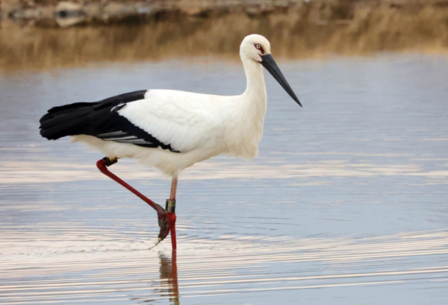 창원특례시는 지난 22일 일본 이시카와현에서 출생한 황새가 창원시 주남저수지 연꽃단지에서 발견됐다고 밝혔다.