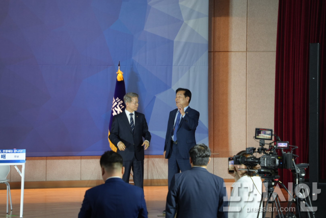 30명의 정책배심원이 함께한 이날 행사는 주도권 토론에서 특히 치열했다. 토론의 포문은 민형배 의원이 열었다. 민 의원은 김영록 지사를 향해 "500조 규모의 반도체 투자 유치를 공약했는데, 1년 내 착공이나 투자 확약 단계까지 이끌어낼 구체적인 기업 명단과 액수를 공개할 수 있나"라고 직격했다.