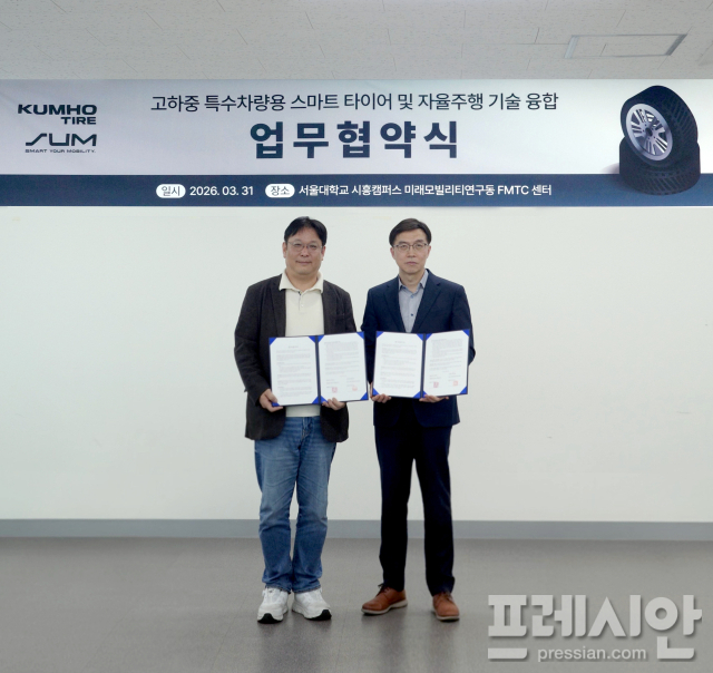 금호타이어는 최근 에스유엠과 스마트타이어·자율주행 기술 융합을 위한 업무협약(MOU)을 체결했다고 1일 밝혔다.