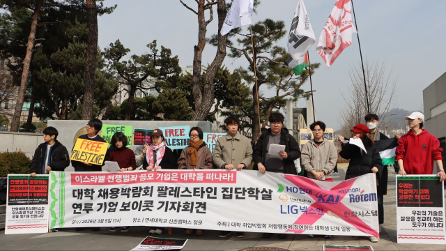 3월 5일 공동행동 참여 단체들이 연세대 앞에서 '대학 채용박람회 팔레스타인 집단학살 연루 기업 보이콧' 기자회견을 주최했다. 팔레스타인인 당사자이며 한국에서 석사과정에 있는 타렉 함단은 이스라엘이 병원과 학교를 파괴하는 "전쟁범죄"에 사용된 무기와 장비의 기업들을 기억한다며 공동행동을 지지했다.