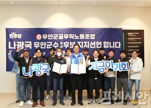 전남 무안군청 공무직 노동조합이 6일 나광국 더불어민주당 무안군수 예비후보에 대한 공식 지지를 선언하고 정책협약을 체결했다.