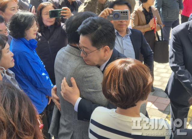 기자회견 이후 김 지사와 정책연대를 한 안호영 전북도지사 예비후보가 현장에서 절을 하며 "상처받은 마음을 어떻게 치유하고 다시 모을 것인지가 가장 중요하다"며 "그 마음을 모으는 것이 통합의 정치"라고 말했다.