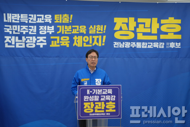 장 후보는 이날 광주시교육청에서 기자회견을 열고 "청렴도 전국 꼴찌, 이것이 전남·광주교육의 민낯"이라며 포문을 열었다.