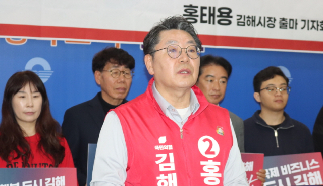 홍태용 국민의힘 김해시장 후보는 8일 김해시청 프레스센터에서 기자회견을 열고 공식적으로 재선 출사표를 던졌다.