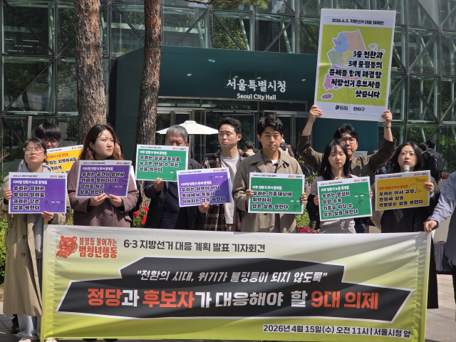 16개 청년단체가 모인 '불평등 물어가는 범청년행동'은 15일 서울 중구 서울시청 앞에서 기자회견을 열고 "어디에서 누구와 살든 누구나 적정한 삶을 영위할 수 있는 사회를 만들기 위해 각 정당과 후보자들의 책임 있는 대응과 비전 제시를 촉구한다"고 밝혔다.