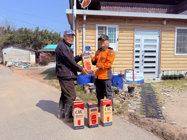 소방서는 이날 화재 초기진압에 기여한 김남운 이장에게 소화기 4대를 전달하며 감사의 뜻을 표했다.