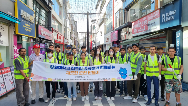 강원대학교(총장 정재연) 춘천캠퍼스(캠퍼스총장 임의영) KNU글로벌인재네트워크센터(센터장 김익현)는 16일 춘천 명동 입구 및 중앙시장 일대에서 ‘외국인 유학생과 함께하는 깨끗한 춘천 만들기’ 환경정화 활동을 실시했다.