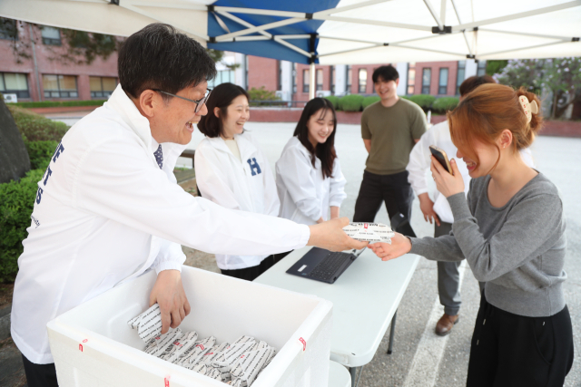 문영식 총장이 직접 행사에 참여한 학생 250여 명에게 부리또와 음료를 제공하며 응원의 인사를 건넸다.