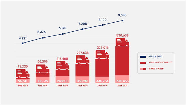 배송량은 지원 확대 이후 크게 증가했다. 지난해 상반기 월평균 7만 2000 건 수준이던 물량은 하반기 13만 3000 건으로 84% 늘었다. 사업 참여 업체 수도 같은 기간 4221개에서 8947개로 두 배 이상 증가했다.