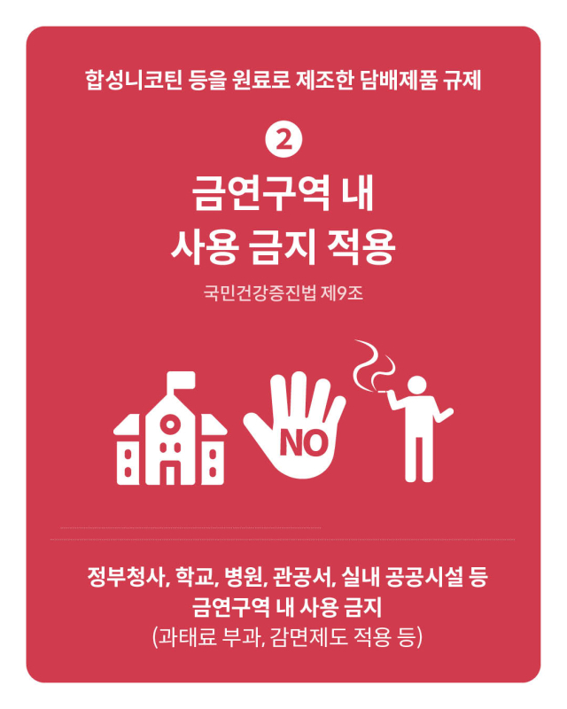 이번 담배사업법 개정안은 기존에 연초(煙草)의 잎을 원료로 한 제품만을 담배로 정의하던 것에서 범위를 확대함으로써, 연초나 니코틴을 원료의 전부 또는 일부로 제조된 제품까지 담배에 포함되며 그동안 규제 사각지대에 있었던 합성니코틴 액상형 전자담배 등 모든 담배가 규제 대상에 포함된다.