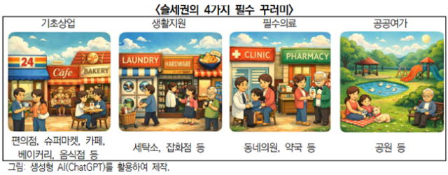 경기연구원은 최근 보고서를 통해 도보 10분 이내에 카페, 편의점, 병원 등 생활 편의시설을 이용할 수 있는 ‘슬세권’ 개념을 제시하고, 이를 기반으로 한 도시 조성 방향을 제안했다고 23일 밝혔다.