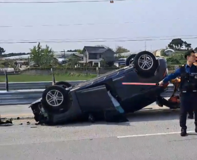 23일 고창경찰서에 따르면 이날 오후 2시 50분께 고창군 고수면 장두리마을 앞 4차선 도로를 달리던 A씨(여·57세) 차량이 중앙분리대를 들이받고 뒤집혔다.